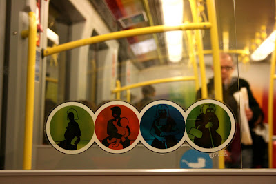 This is the old sticker for seating priority that can be found in all of the cityβs transport system; bus, trams, trains.