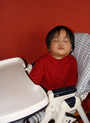 Is it child stress that makes them sleep in whatever position? Ah letβs discuss tomorrow. For now, here is my little boy sleeping on his high chairβ¦.